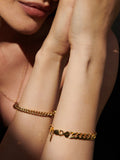 Vermeil Flat Curb Chain Bracelet pictured on models wrist.