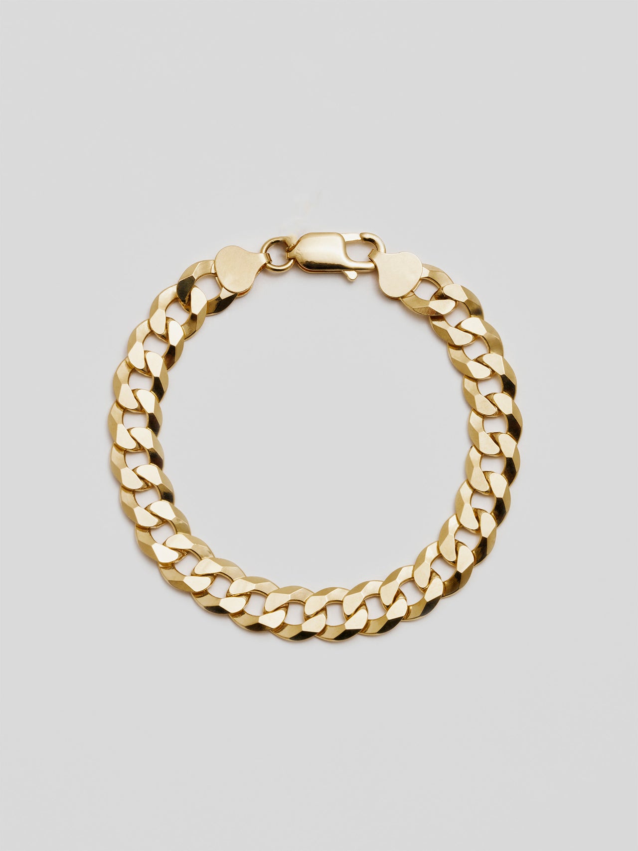 Flat Curb Chain Bracelet:14Kt Plated Sterling Silver Flat Curb Chain Width: 9mm Length: 7"