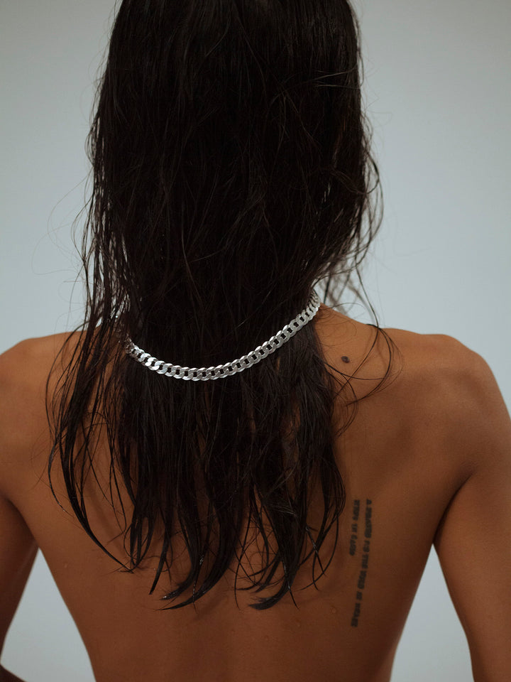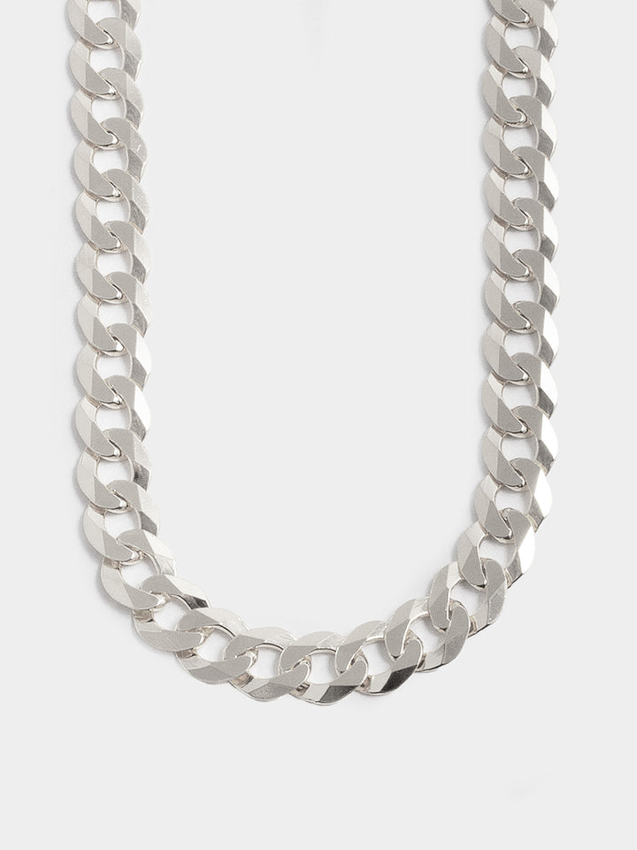 An everyday ritual. Crafted from sterling silver, The Flat Curb Chain is an instant standout thanks to its oversized statement links. Wear it to elevate simple white tees or add personality to streamlined blazers.