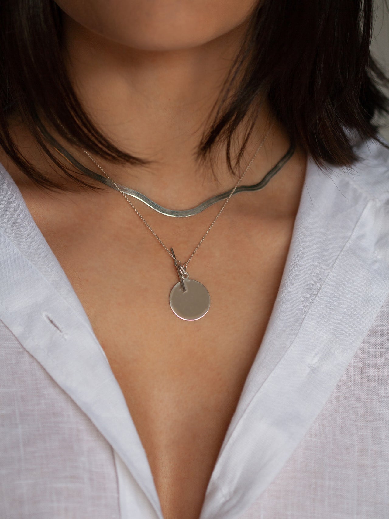- Sterling Silver Disk & Toggle Necklace