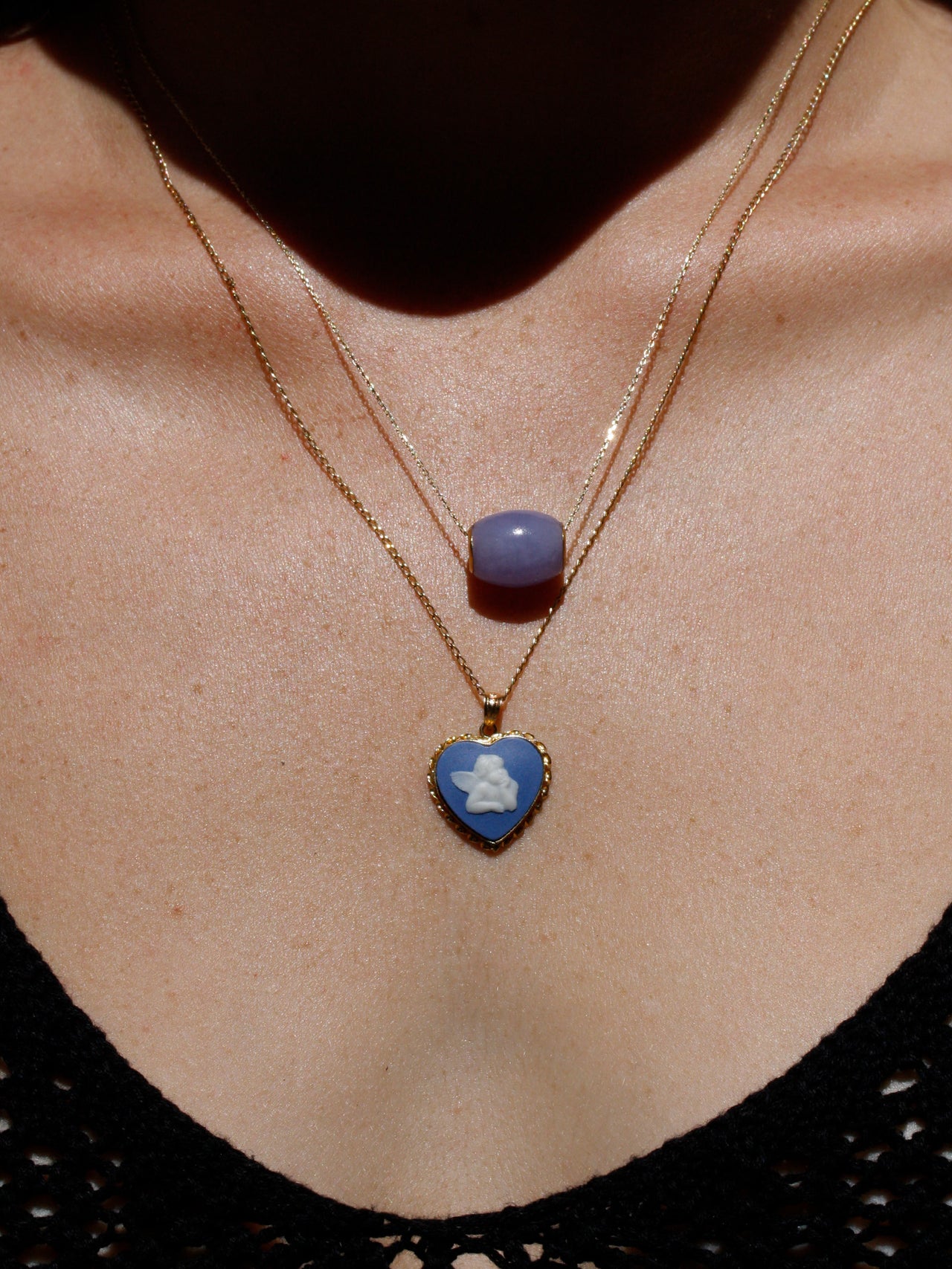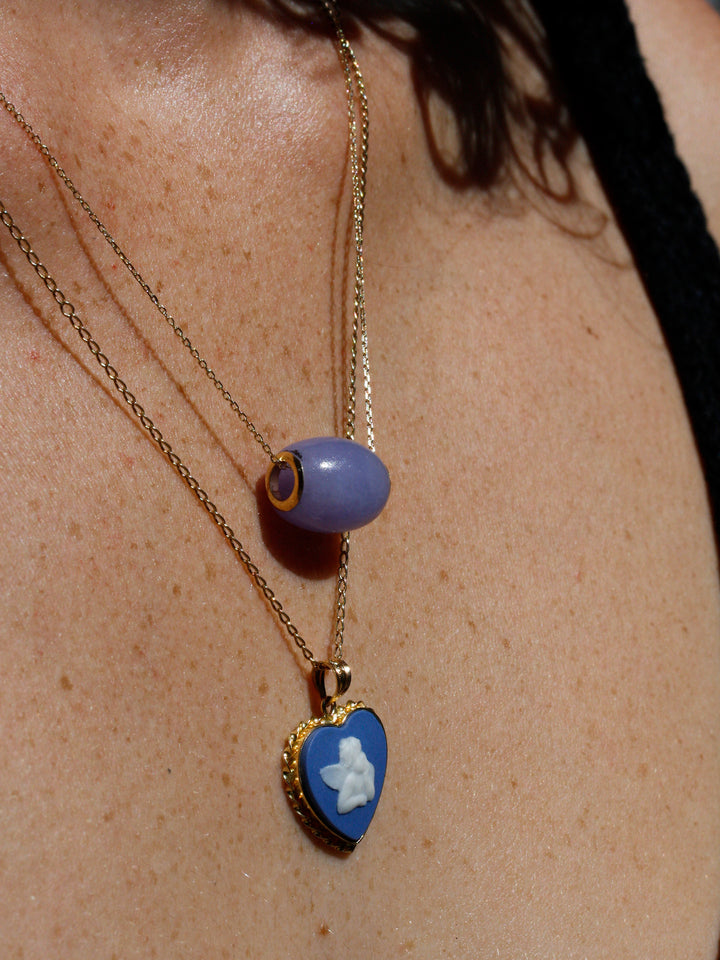 - 14kt Yellow Gold Lavender Jade Bead Necklace
