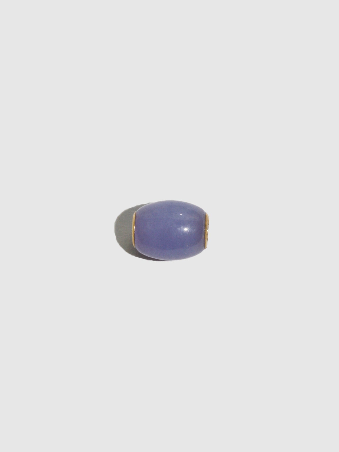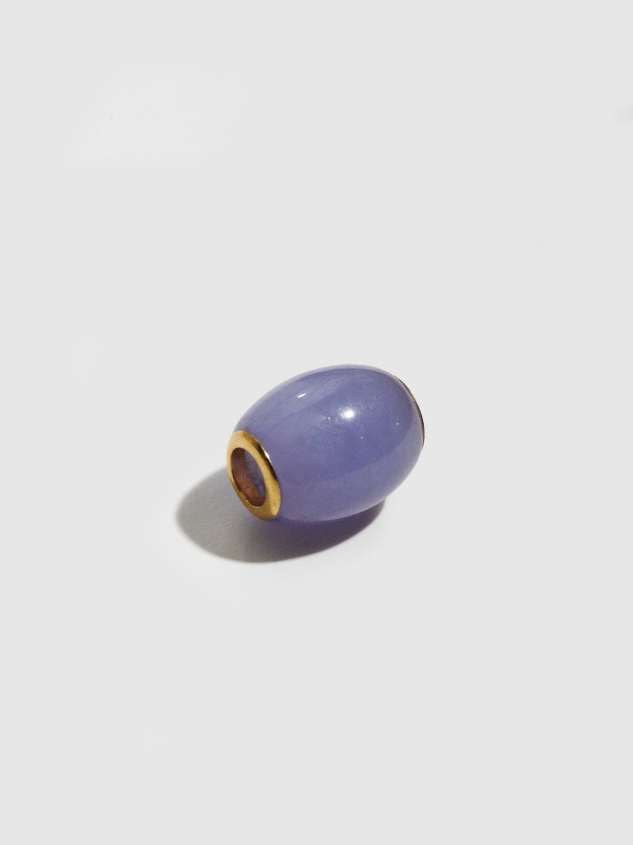 Dating from the 70s to 90s when these types of beads were popular, this vintage dyed lavender jade bead features polished 14k yellow gold end caps on both sides. The generous center hole makes it perfect for stringing on a variety of chains or cords, ideal for creating a unique and timeless neckline.