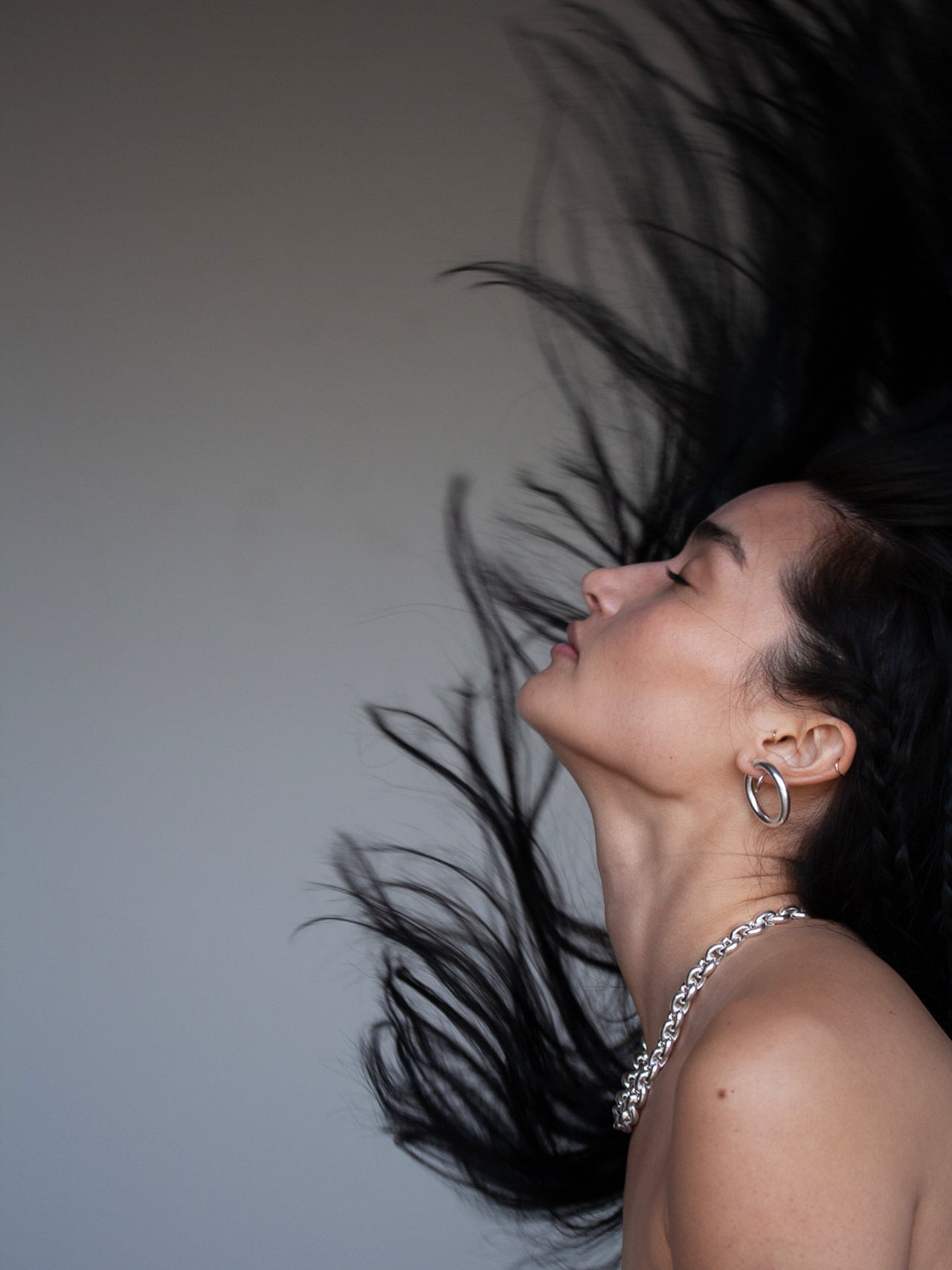 Medium Tru Hoops pictured in sterling silver on model.