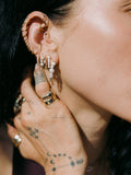 Punk in past life. This subversive mini safety pin earring is recast in 14Kt gold and strung with freshwater pearls of various sizes. Sweep your hair up to show off its glossy sheen.