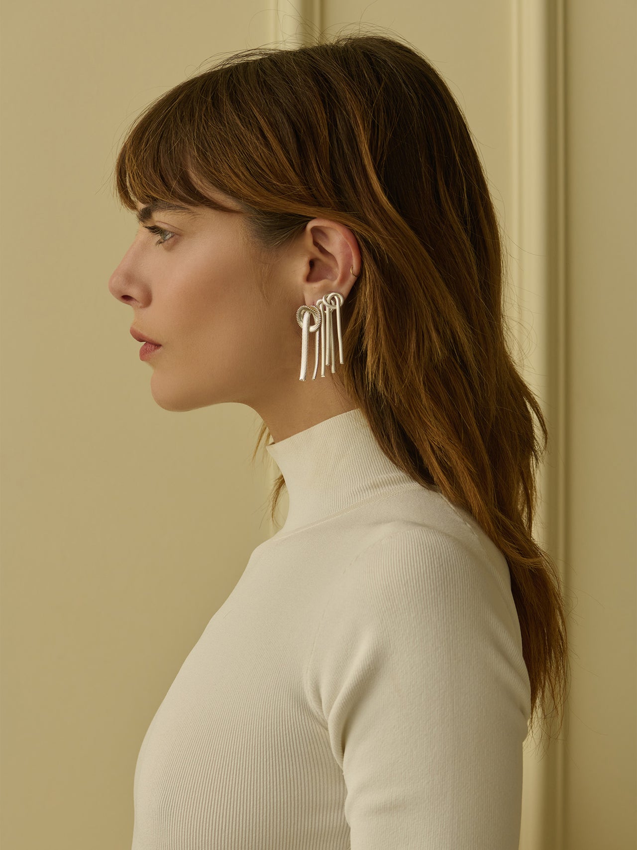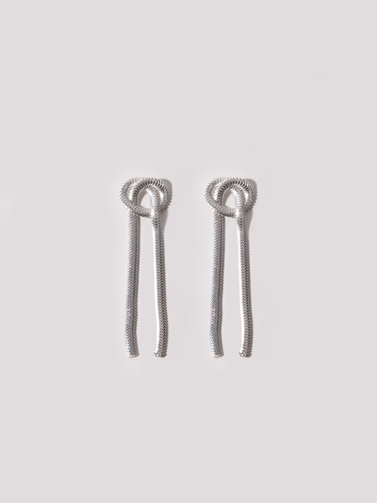 A sculptural update to classic drop earrings. Handcrafted in Italy from sterling silver, the design features a fluid, double-strand cashmere chain anchored by a single knotted loop.