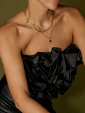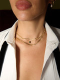 14Kt Yellow Gold XL Hollow Figaro Chain pictured on model styled with the Watts ID Necklace.